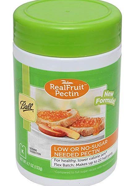 Ball® RealFruit™ Low or No-Sugar Needed Pectin is great for lower calorie jam. It has been reformulated for improved flavor and performance. Be assured of a good set each time as this formula provides more flexibility for sugar while maintaining a good gel. This new bulk bottle is for multiple uses. It replaces 3-4 boxes of pectin – a great value! Scalable recipe – make from 1-10 jars of jam per batch, up to 22 jars per package 3 Tablespoons = 1 box of other pectin